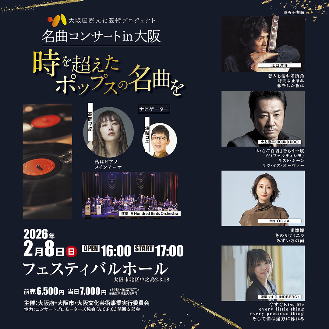 大阪国際文化芸術プロジェクト「名曲コンサートin大阪~時を超えたポップスの名曲を」 開催決定のお知らせ